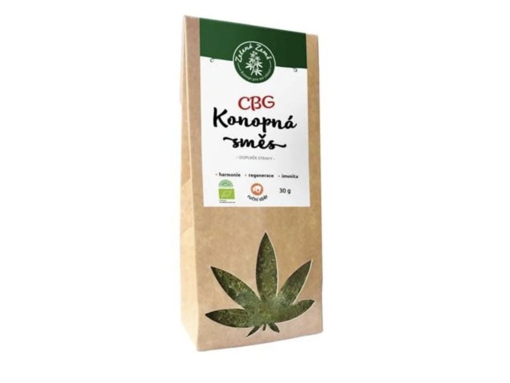 CBG konopná směs BIO - doplněk stravy. Speciální odrůda konopí Santhica je charakteristická svým obsahem CBG - kanabigerolu (1,8%) v BIO kvalitě. 30g CZ-BIO-002